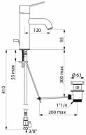 BIOCLIP Bateria zatrzaskowa do umywalki L.120 mm , uchwyt pełny , z korkiem i ciągadłem