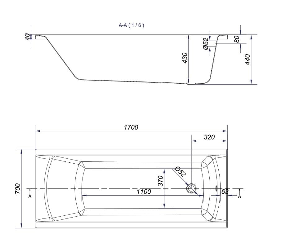 KORAT Wanna prostokątna 170 cm
