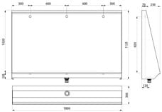 Pisuar stojący, do zabudowy w posadzce, 1800 x 1020 x 300 mm.
