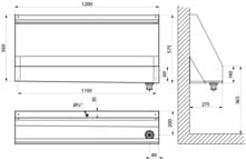 Zbiorowy pisuar wiszący 1200 x 575 x 275 mm.
