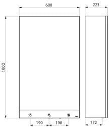 Wymiary: 600 x 223 x 1 000 mm. Szklane lustro: 4 mm