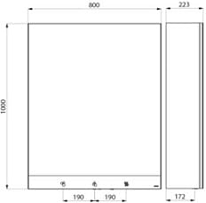 Wymiary: 800 x 223 x 1 000 mm. Szklane lustro: 4 mm