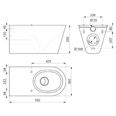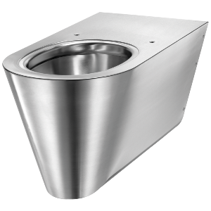 Otwory do mocowania deski sedesowej. Dostarczana z zaślepkami z Inoxu do użycia bez deski sedesowej.
