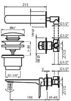 ALETTA Bateria umywalkowa ścienna , z korkiem , chrom