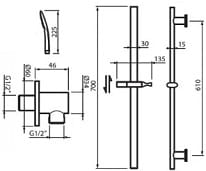 - drążek z uchwytem słuchawki 700mm: mosiądz