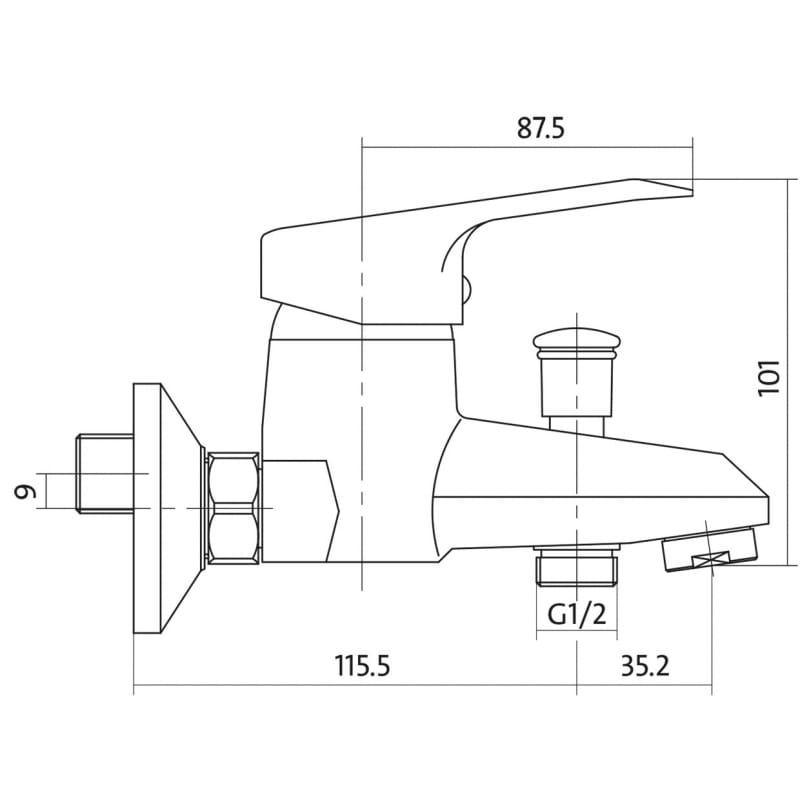 AMET Bateria mechaniczna wannowo/natryskowa, jednouchwytowa, ścienna ze stałą wylewką