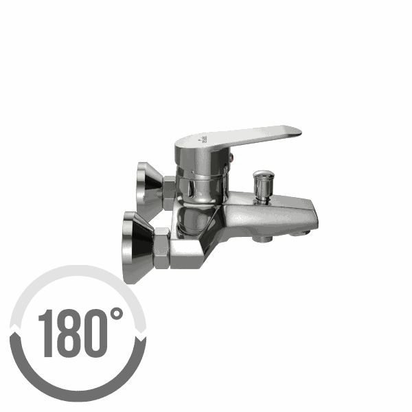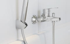 Bateria mechaniczna wannowo/natryskowa, jednouchwytowa, ścienna ze stałą wylewką, z przełącznikiem, grupa akustyczna II, klasa przepływu B/B.