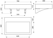 Umywalka mocowana na ścianie, 700 x 440 mm.