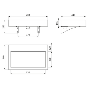 Umywalka ścienna, 700 x 440 mm.