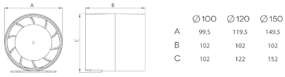 Wentylator standardowy . Dostępny w wersji Ø 100 lub Ø 120 lub Ø 150