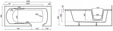 AVO Wanna prostokątna dla starszych osób starszych 140x70 cm