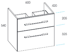 Szafka podumywalkowa Barcelona 60 cm, 2 szuflady z funkcją cichego samodomyku oraz z pełnym wysuwem.