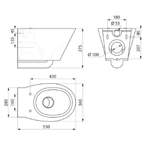Otwory do mocowania deski sedesowej. Dostarczana z zaślepkami z Inoxu do użycia bez deski sedesowej.