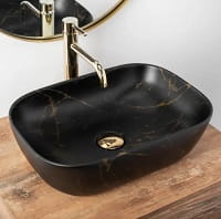 BELINDA BLACK MARBLE MATT Umywalka nablatowa 46,5x33,5 cm , czarna/złota