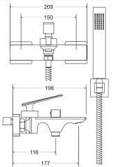 Bateria ścienna wannowa zawiera : baterie z wylewką i przełącznikiem wylewka -natrysk oraz słuchawkę z wężem na osobnym uchwycie
