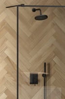 - Bateria i deszczownica oraz zestaw prysznicowy w wykończeniu czarny matowy