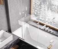 Rozłożony parawan umożliwia korzystanie z wanny jak z kabiny prysznicowej