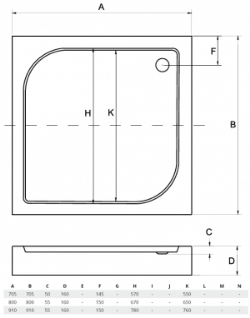 BESCO Oskar brodzik prysznicowy 70 kompaktowy kwadratowy