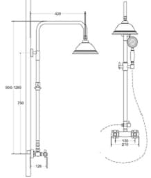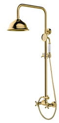 Besco Retro Zestaw prysznicowy natynkowy z deszczownicą i zestawem prysznicowym w kolorze złotym