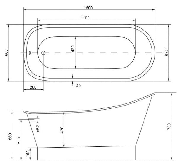 Wanna bez otworu przelewowego, możliwość wykonania otworu na zamówienie.