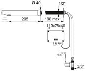 Wylewka L.205 mm do instalacji zaściennej ≤ 190 mm w szachcie technicznym.