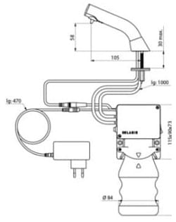 Niezależna skrzynka elektroniczna i niezależny, zdejmowany zbiornik do montażu pod umywalką.