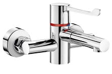 DELABIE SECURITHERM Sekwencyjna, ścienna bateria termostatyczna do zlewu, z zatrzaskową wylewką BIOCLIP , mimośrody standardowe