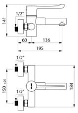 Bateria dostarczana z 2 wylewkami z Inoxu L. 136 mm.