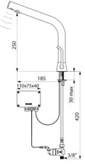 Wysokość wylewki: 250 mm do umywalki nablatowej.