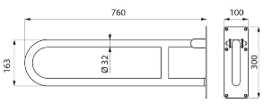 Uchylna poręcz łukowa Basic, Ø32 dla osób niepełnosprawnych.