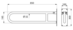 Uchylna poręcz łukowa Basic Ø32 dla osób niepełnosprawnych.