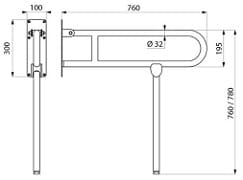 Uchylna poręcz łukowa Basic Ø32 z podporą dla osób niepełnosprawnych.