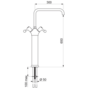 Ruchoma wylewka rura Ø22 H.650 L.300.