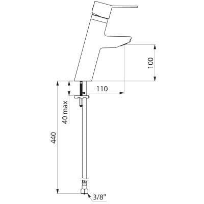 Jednootworowa bateria mechaniczna H.100 L.110 wyposażona w higieniczne wyjście BIOSAFE.