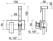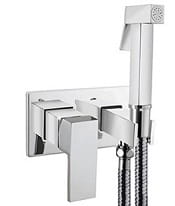 Bateria bidetowa podtynkowa z słuchawką , kwadratowa , chrom