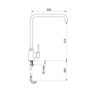 Bateria do zlewu, 1-otworowa stojąca H.315 L.300 z ruchomą wylewką