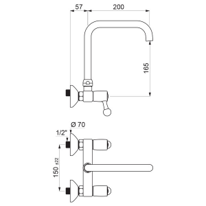 2-otworowa bateria ścienna z górną, ruchomą wylewką rura Ø22 L.200.