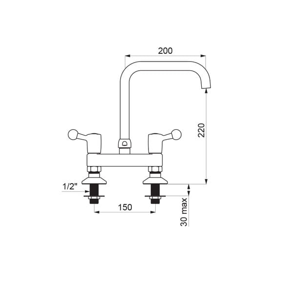 Bateria do zlewu, 2-otworowa stojąca , H.220 L.200 z ruchomą wylewką