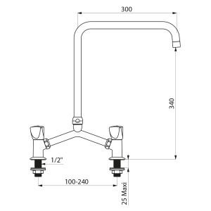Bateria do zlewu, 2-otworowa stojąca H.340 L.300 z ruchomą wylewką