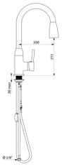 Bateria z ruchomą, wysoką wylewką „C” do umywalki lub zlewu L.190 H. 210.