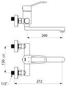 Bateria ścienna do umywalki , L.20 cm , regulator ciśnienia , mimośr. stand