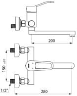 Bateria ścienna do umywalki , ruchoma wylew , L.20 cm , regulator ciśnienia