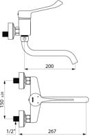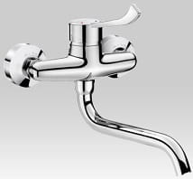 DELABIE Ścienna bateria mechaniczna do zlewu z ruchomą wylewką rura L.200 mm