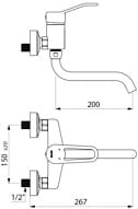 Bateria ścienna z ruchomą wylewką L.200 mm , uchwyt ażurowy