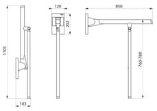 Be-Line Poręcz uchylna z podporą , L 850 mm , antracyt