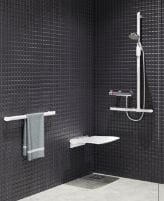 Składane siedzisko natryskowe Be-Line, zdejmowane dla osób niepełnosprawnych.