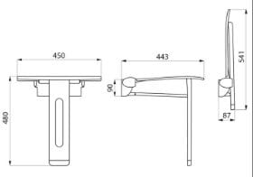 Składane siedzisko natryskowe Be-Line z podporą, zdejmowane dla osób niepełnosprawnych.