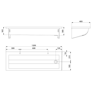 CANAL Umywalka zbiorowa ścienna 120 cm , 2 otwory , stal nierdzewna z otworem