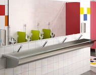Umywalka zbiorowa mocowana na ścianie, 4 stanowiska - 2400 mm.
