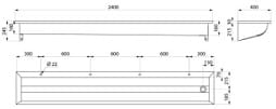 CANAL Umywalka zbiorowa ścienna 240 cm , 4 otwory , stal nierdzewna